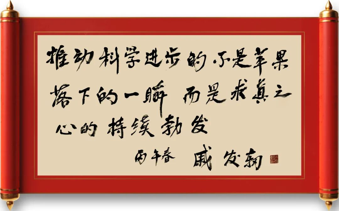 活动现场还特别展示了我国著名空间技术专家、神舟飞船总设计师、中国工程院院士戚发轫的赠言:推动科学进步的不是苹果落下的一瞬,而是求真之心的持续勃发。