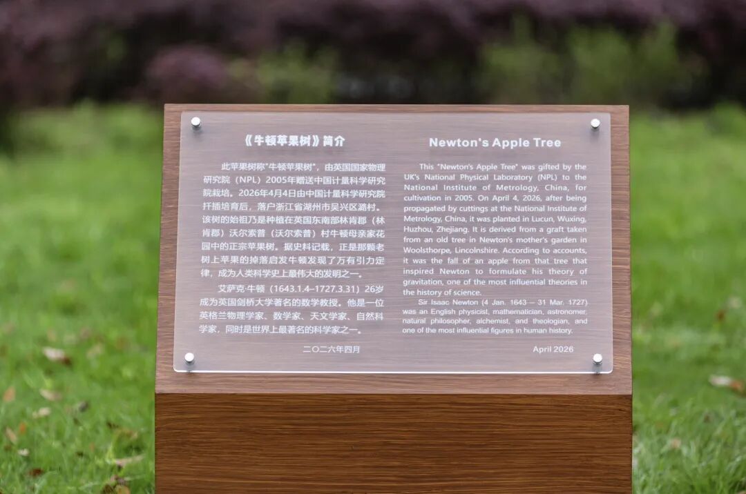 活动中,中国计量科学研究院捐赠了“牛顿苹果树”树苗。国家市场监督管理总局相关负责人介绍了“牛顿苹果树”的历史渊源及培育情况。据悉,艾萨克·牛顿(1643.1.4-1727.3.31)26岁成为英国剑桥大学著名的数学教授。他是一位英格兰物理学家、数学家、天文学家、自然科学家,同时是世界上著名的科学家之一。“牛顿苹果树”因与艾萨克·牛顿关于万有引力的科学发现相关而闻名,被视为科学探索精神的重要象征。此次落户吴兴的树苗,由英国国家物理研究院赠予、中国计量科学研究院培育后移植而来。该树的始祖乃是种植在英国林肯郡沃尔索普村牛顿母亲家花园中的正宗苹果树。